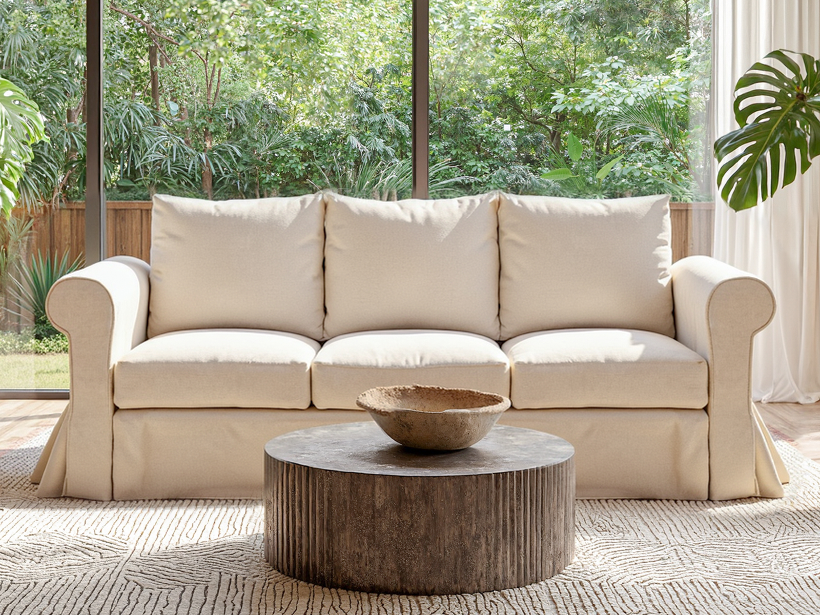 Every seat and back cushion is filled with over 70 % impeccably sanitized white goose down, boasting 700 fill-power loft.