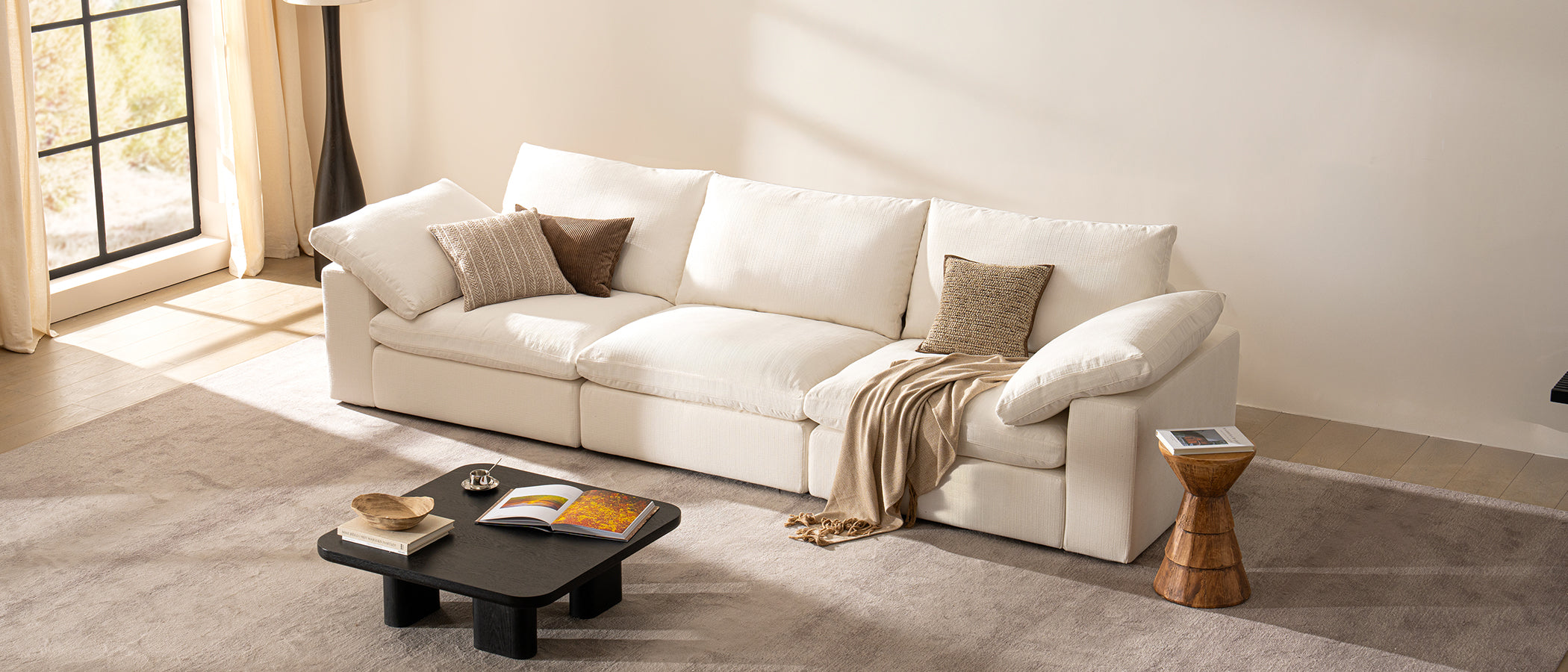 The upgraded Cloudora™ sofa combines sustainability and comfort. Crafted with patented triple-layer Diamond Foam, a sturdy recycled metal frame, breathable goose-down fill, and durable linen upholstery, it offers unmatched comfort while being eco-friendly.