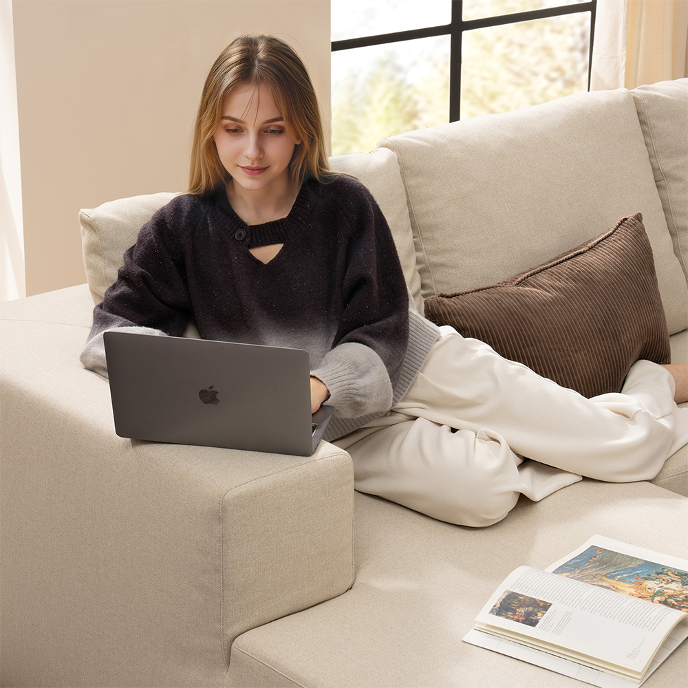 Oversized boneless couch provides spacious, cloud-like comfort with a flexible, modular design for easy reconfiguration.