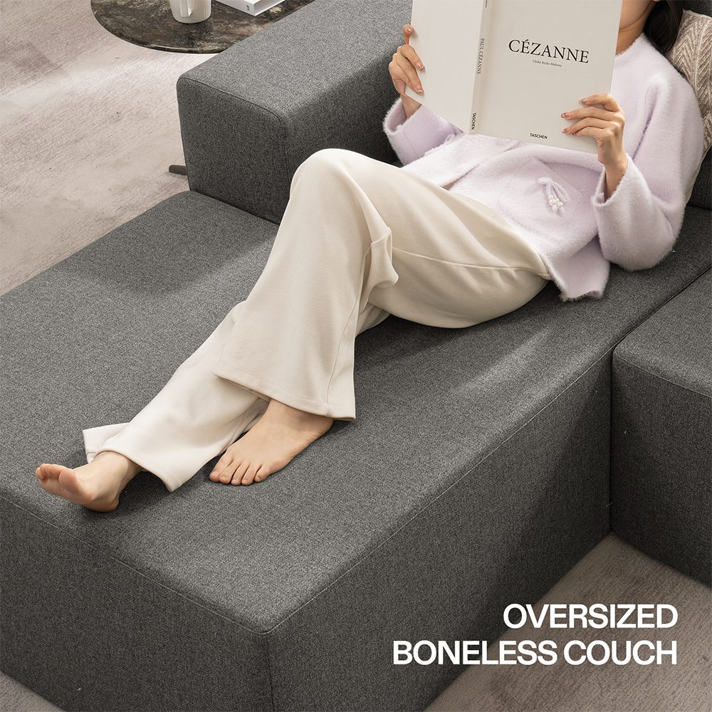 Oversized boneless couch provides spacious, cloud-like comfort with a flexible, modular design for easy reconfiguration.